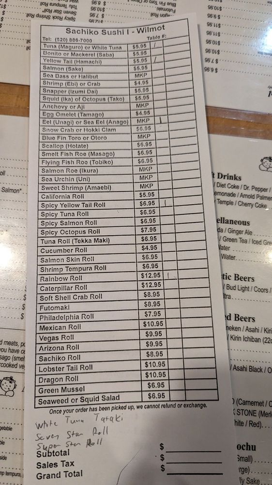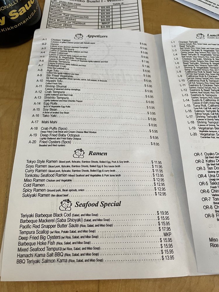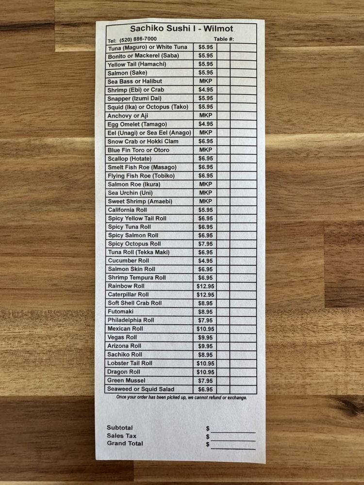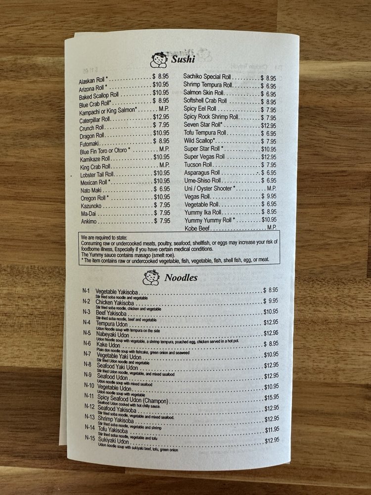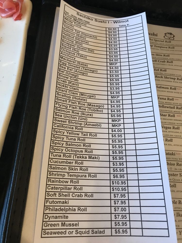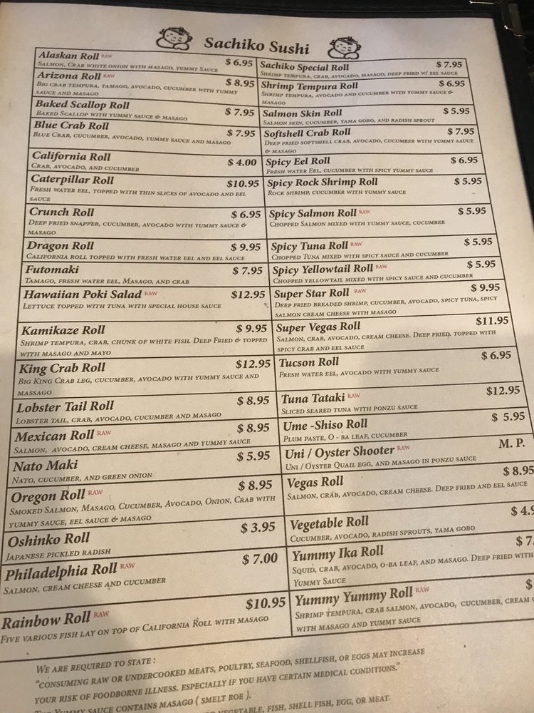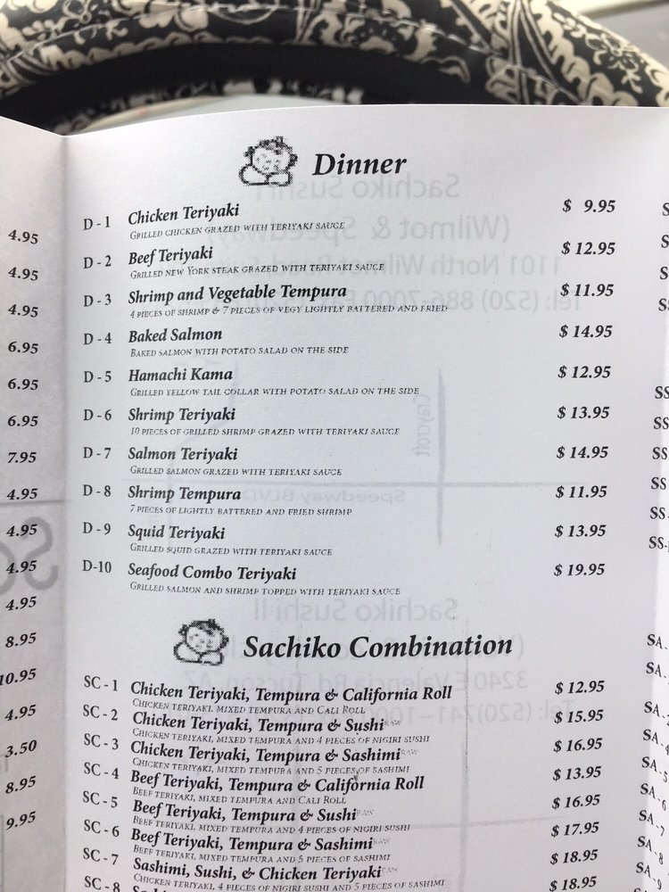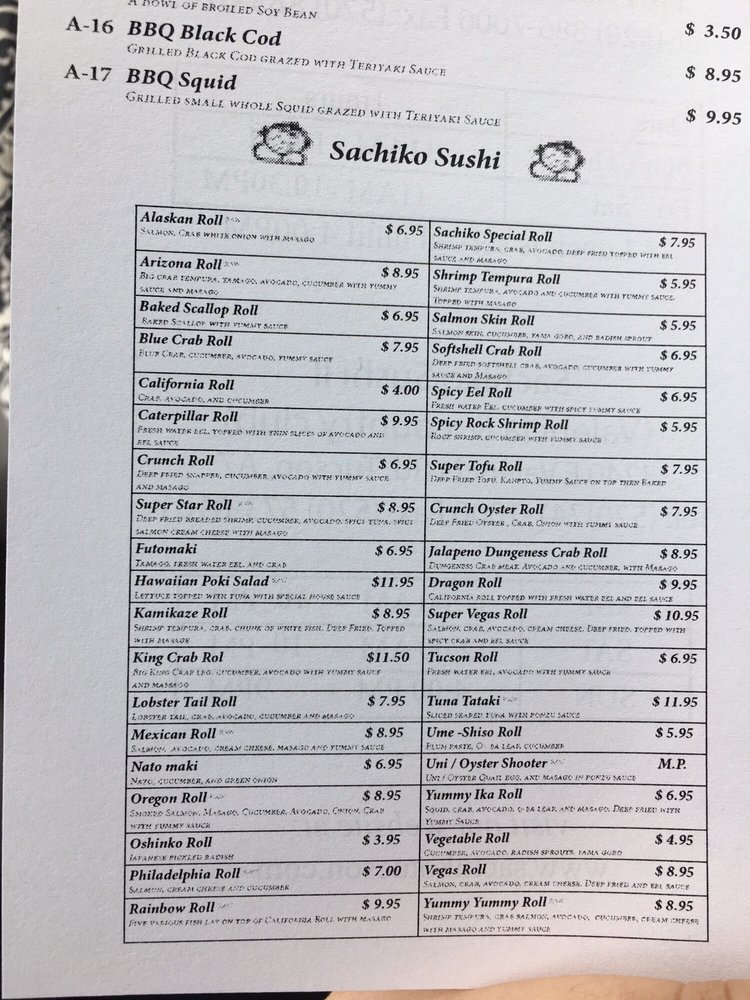 Sachiko Sushi Menu